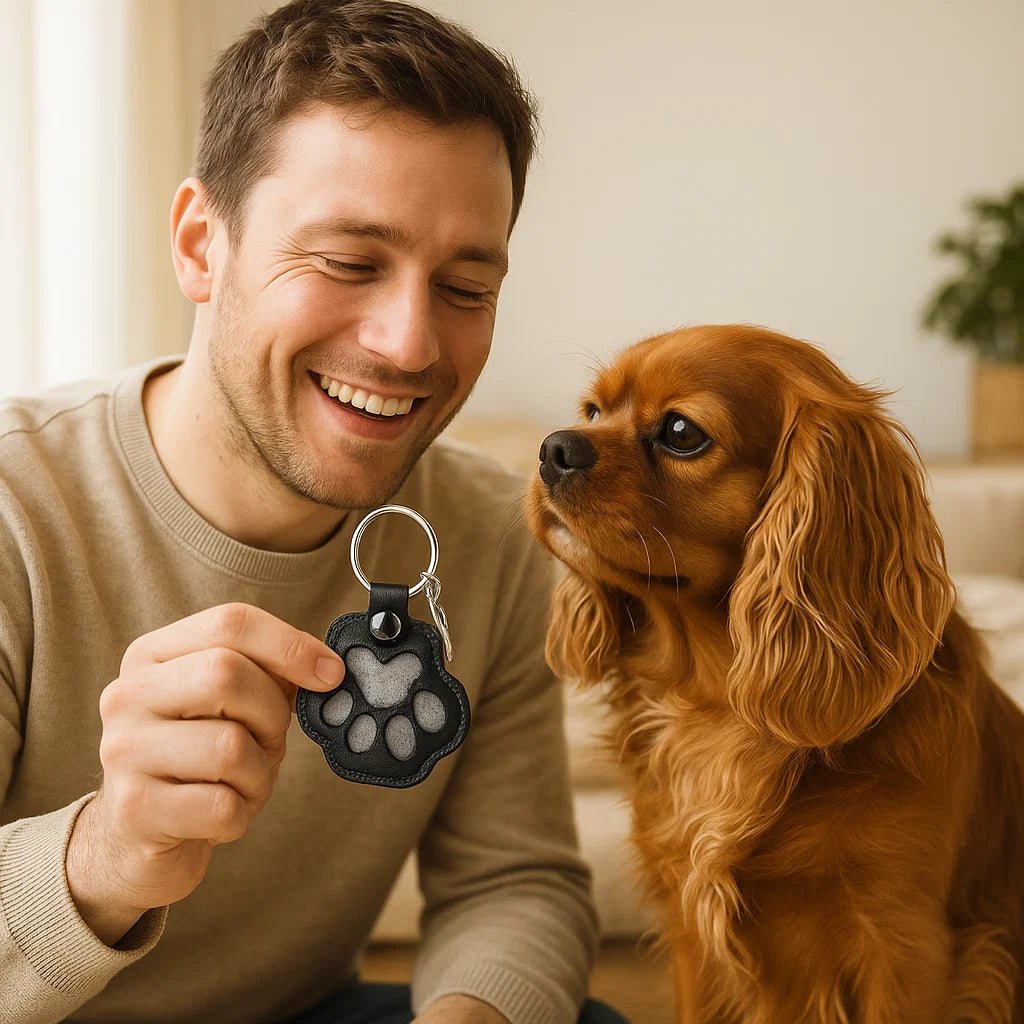 Dieser Schlüsselanhänger verwandelt Trauer in liebevolle Erinnerung. Das dezente Design ermöglicht es, Ihr Haustier in Gedanken immer bei sich zu tragen – ein stilles Zeichen tiefer Zuneigung und Dankbarkeit.