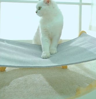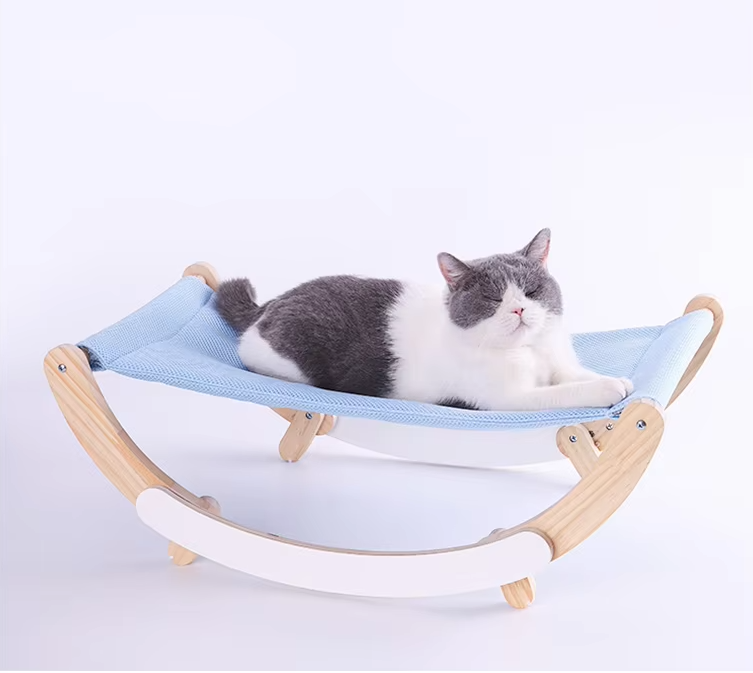 "Das Hängende Katzenbett aus Holz ist nicht nur optisch ein Highlight, sondern auch sehr bequem für meine Katze. Sie liebt es, in der weichen Hängematte zu entspannen, und die stabile Konstruktion sorgt dafür, dass sie sicher und bequem schläft."