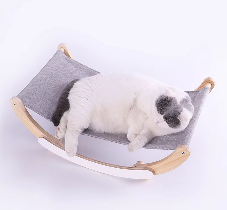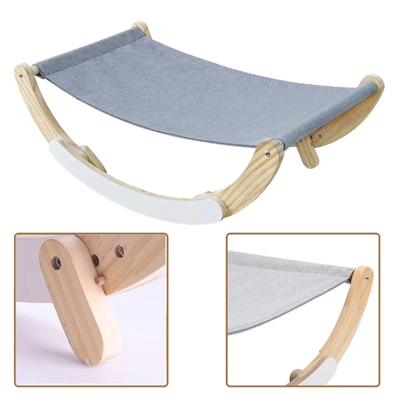 Hängendes Katzenbett Aus Holz – Bequeme Katzenhängematte Modernes Design Grau