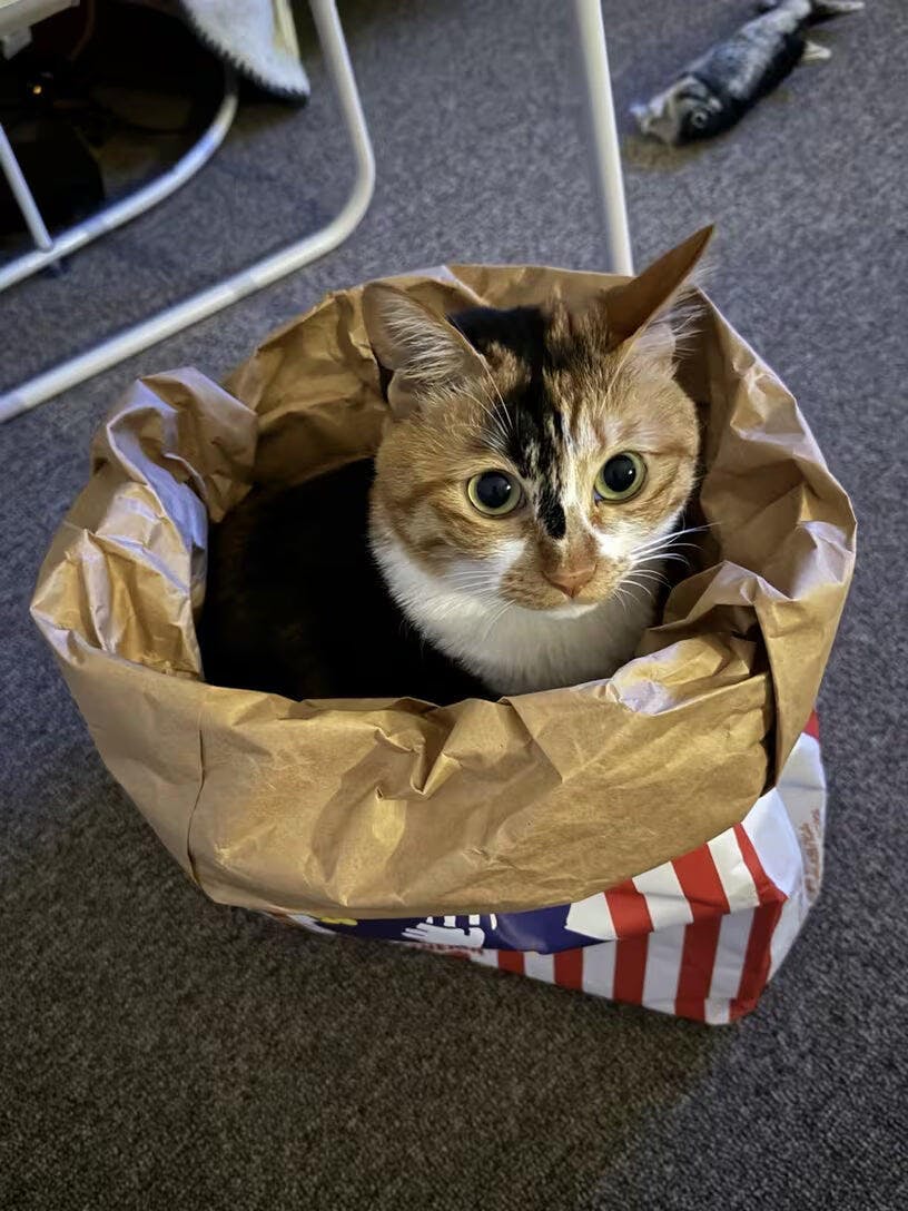 Meine Katze hat die Popcorn-Tüte sofort angenommen und liegt stundenlang darin. Besonders gefällt mir, dass sie stabil bleibt, auch wenn meine Katze wild hineinspringt.
