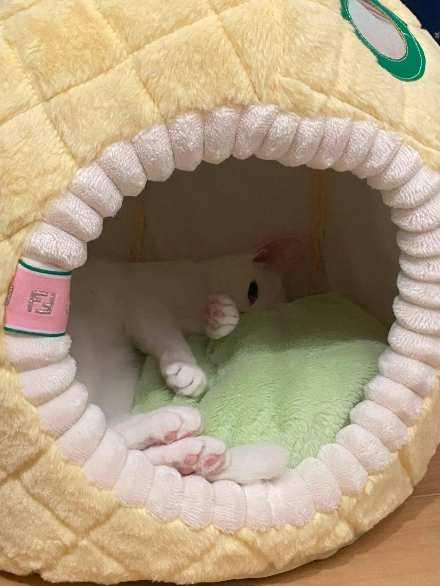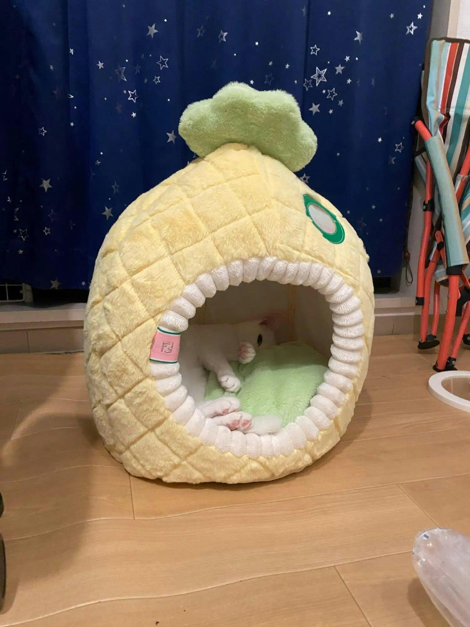 "Meine Katze liebt ihre neue Ananas-Höhle! Sie fühlt sich sofort wohl darin und genießt ihren Schlaf, da das Material wirklich weich und gemütlich ist – perfekt für ihre Ruhezeiten."