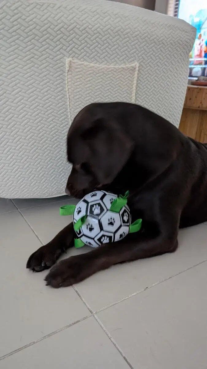 "Der robuste Hundespielball mit Zuggriffen ist das Lieblingsspielzeug meines Labradors – er liebt es, damit zu ziehen und zu toben. Besonders praktisch finde ich, dass der Ball extrem widerstandsfähig ist und sogar im Wasser schwimmt, perfekt für den Sommer!"