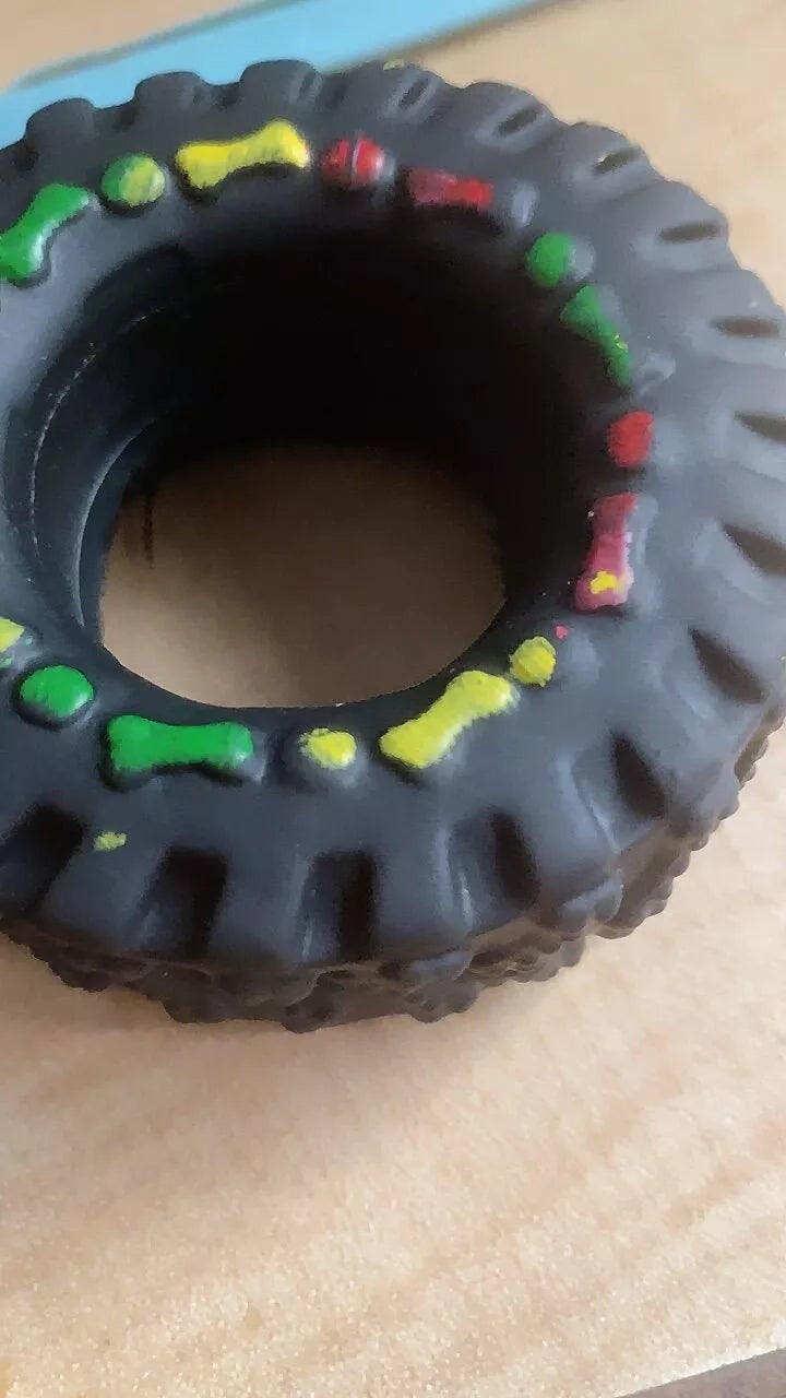 Dieses Spielzeug ist nicht nur praktisch, sondern macht auch jede Menge Spaß! Mit seiner ansprechenden Reifenform und den bunten Details wird es zu einem wahren Hingucker und sorgt dafür, dass dein Hund immer wieder darauf zurückkommt – für stundenlanges Spielen und Kauen.